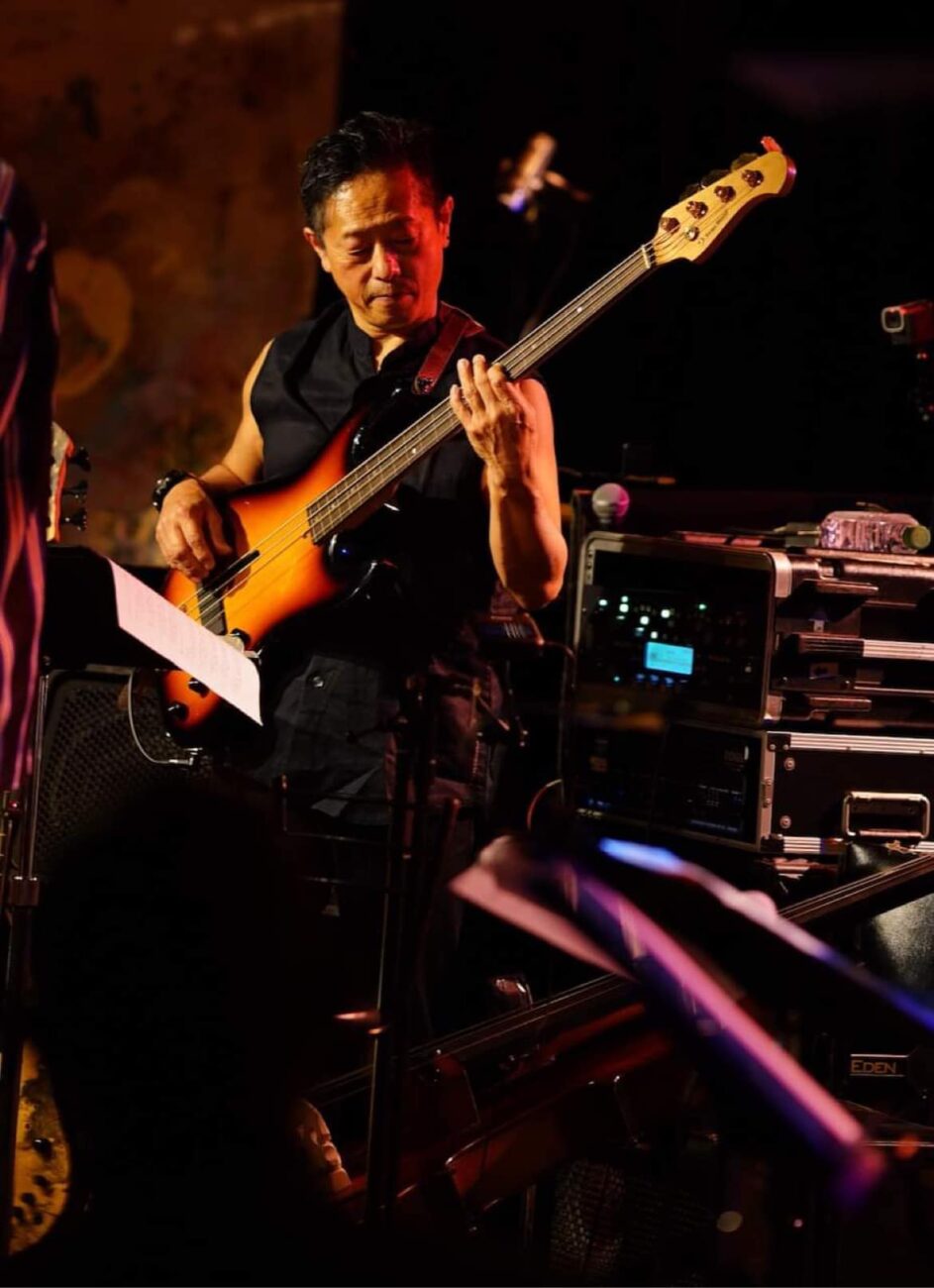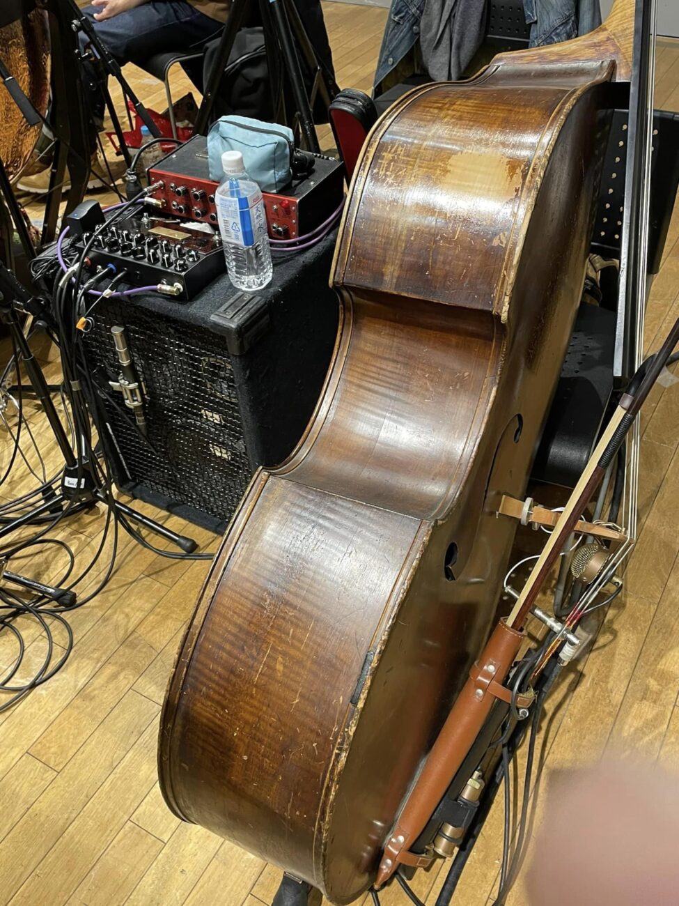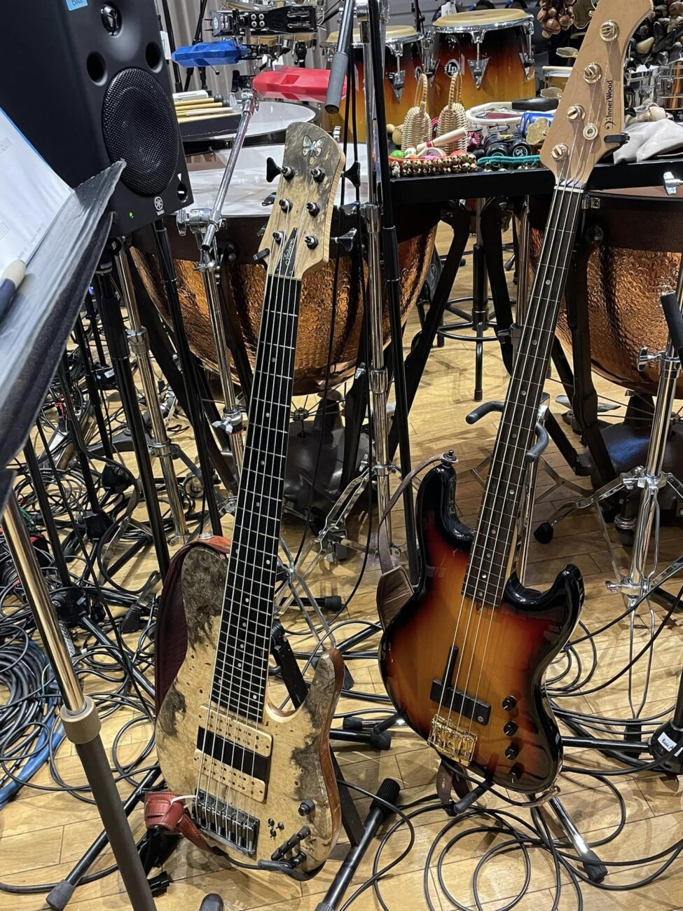 さてそんなミュージカルですが、今回はいつものアコースティックベースや6弦のフォデラに混じって、最近使っていなかったフレットレスが登場。