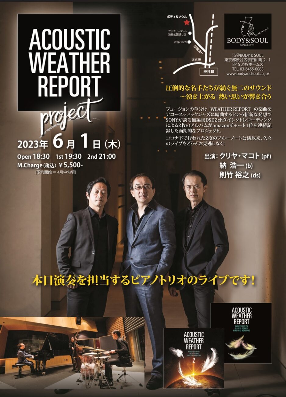 また6月1日には、コロナでまったく活動が止まってしまったアコースティック・ウェザーリポートの、本当に久しぶりのライブがありますので、そちらの方も是非よろしくお願いします。