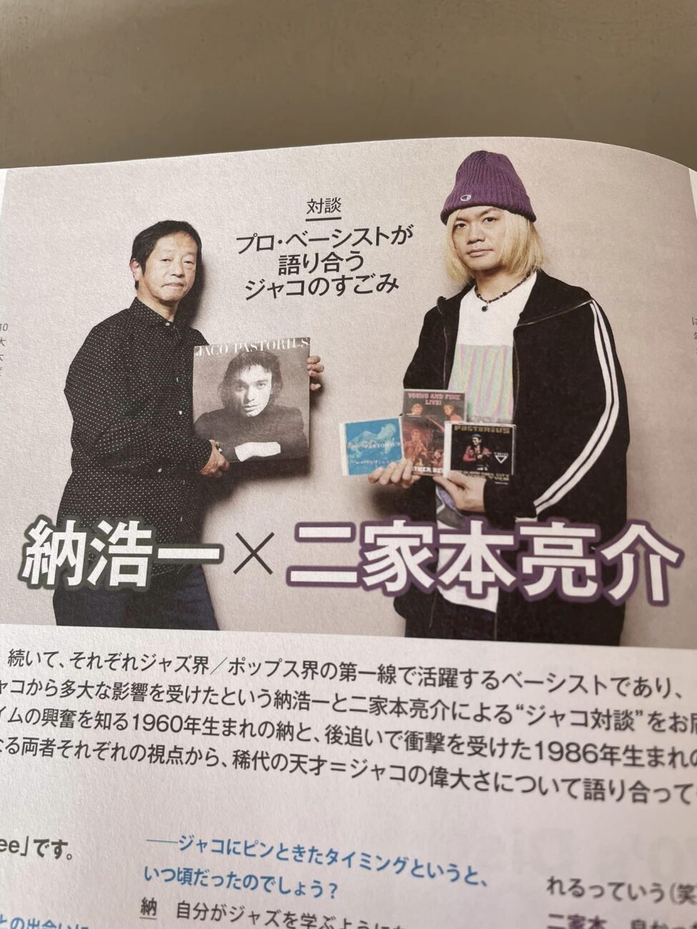 まず今月発売のベースマガジン2月号(2023年Winter)の特集記事、「70年代クロスオーバー」の中で、ベーシストのニ家本亮介さんとジャコ・パストリアスについて対談しています。