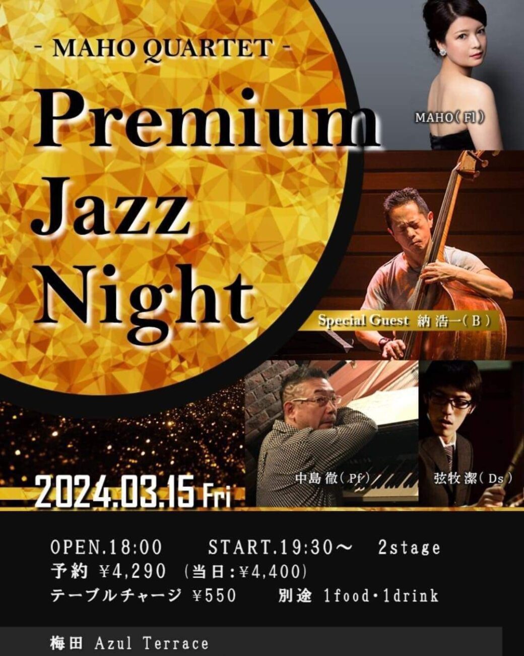 また3月15,16日は大阪梅田Azulにて、お二人の女流フルート奏者との2デイズがあります。関西の素晴らしいミュージシャンとの共演も楽しみ。