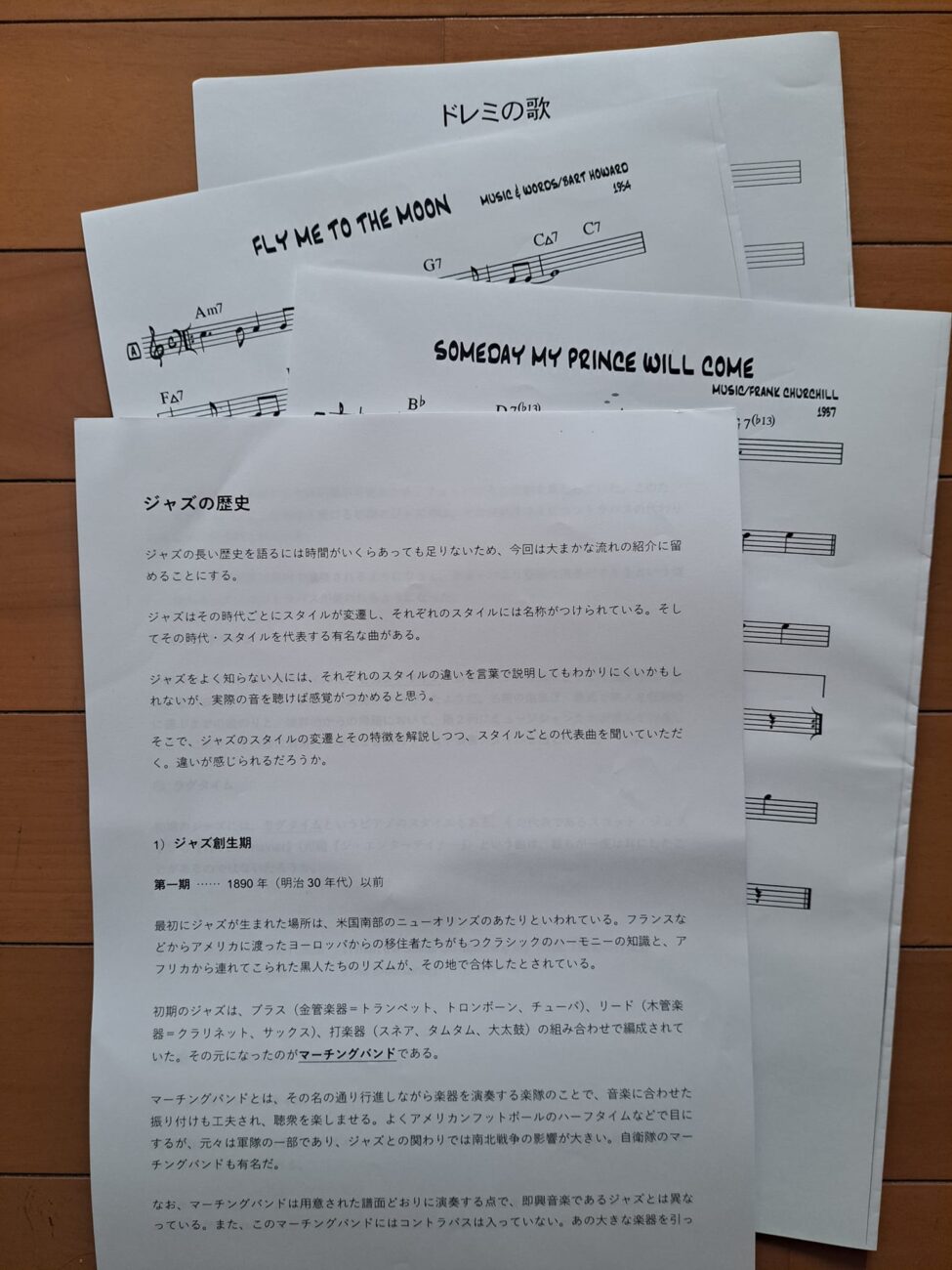 3)実際の譜面を見ながら、スタンダード曲における即興演奏の解説
